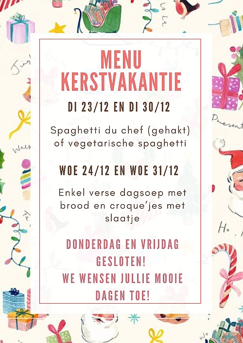 Keuken elke dag van 12u tot 14u, op donderdag -en vrijdagavond van 18u tot 20u (beperkte menu).
